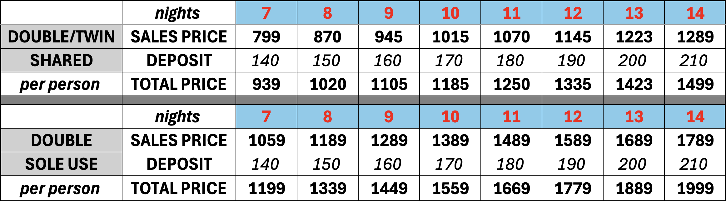 Half Board accommodation (inc drinks with evening meals), Holiday hosts, Welcome drinks reception. Morning and evening Bridge sessions with Pre-Dealt boards, Hand records, Bridgemate electronic scoring. EBU master points, all bridge fees and prizes.