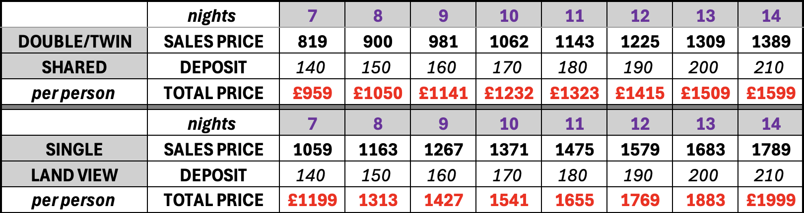 1st May 2027 up to 14nts